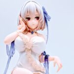 From Azur Lane, Sirius arrives in an elegant white dress that plays up her silhouette: a voluminous bust that softly shows through the translucent fabric, a boldly open back with graceful shoulder blades, and a hip-revealing slit that gives the gown a sultry twist. Two face plates—Smiling and Worried—let you tune the mood for display.
